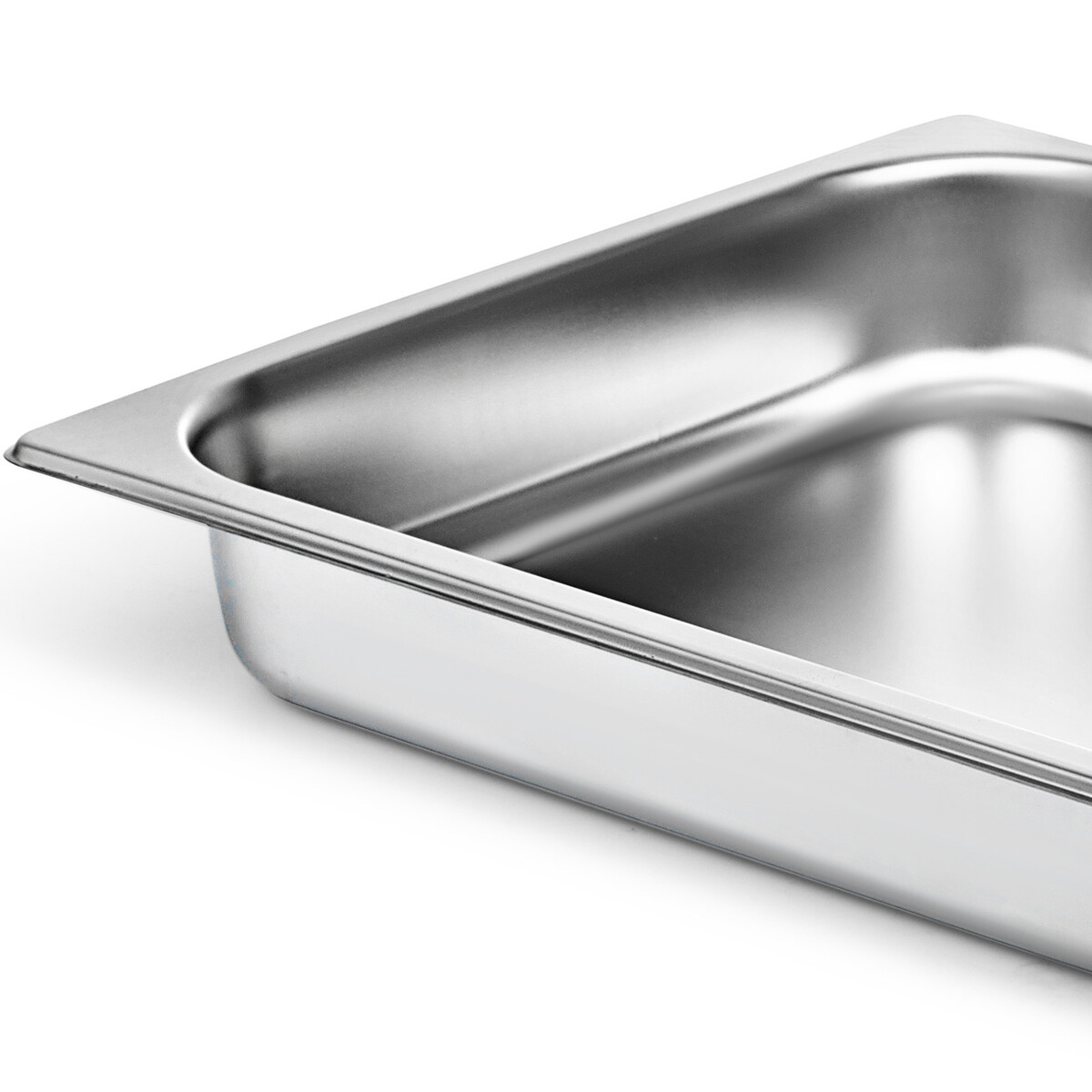 Considerate Design: Rounded corners protect you from scratches and nicks. Higher edge flatness help reduce or avoid dent and scratches. Integrated design, no welding, and gaps. Wide crimping design for secure and comfortable holding. The deep hotel pan is durable and strong, not easy to get damage.