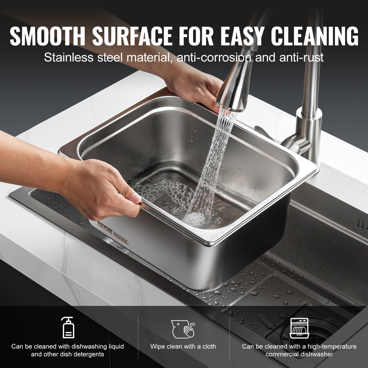 VEVOR 8 Pack Hotel Pans, 1/2 Size Anti-Jam with Lid, Stainless Steel , 4-Inch