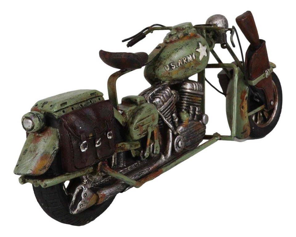 ? This US Army Motorcycle Chopper Bike Figurine is made of polyresin, polished and painted individually.