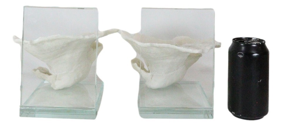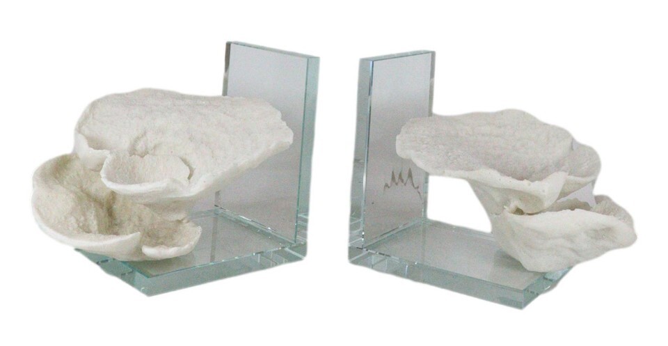 Nautical Coastal Marine White Sea Montipora Corals Acrylic Glass Bookends Set