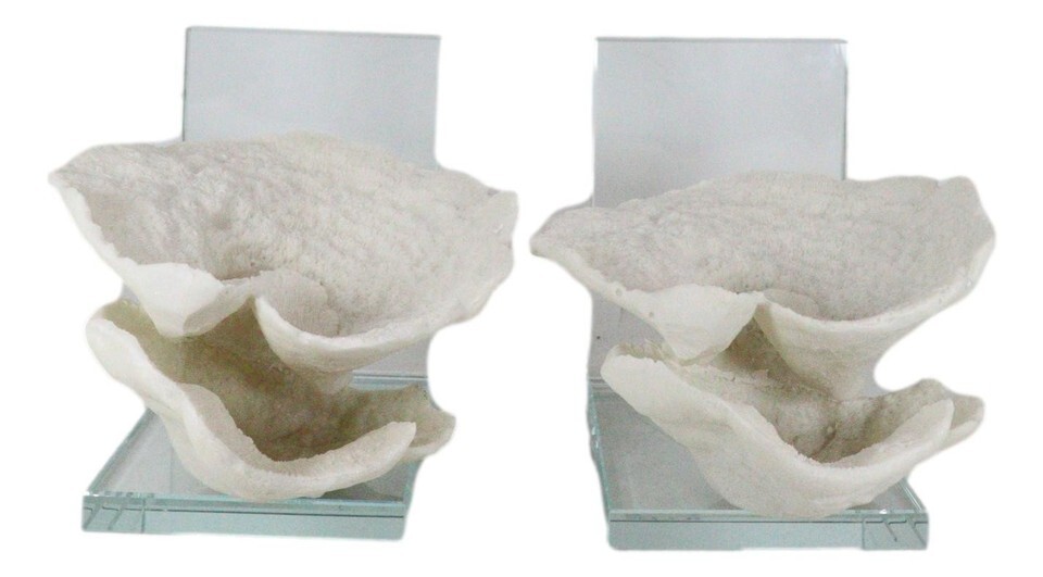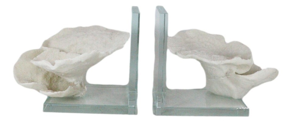 ? Bring seaside style to your shelving or desks with the delightful vintage charm and timeless off-white hues of these realistic Montipora coral bookends. Beautifully set on acrylic glass backing, each bookend will hold favorite books.