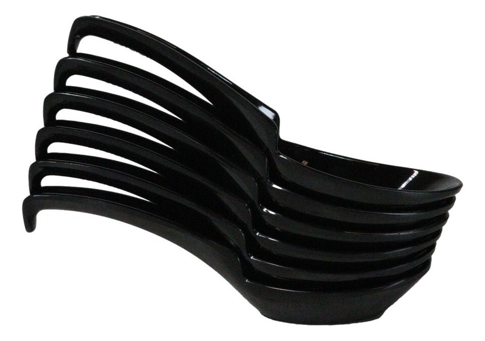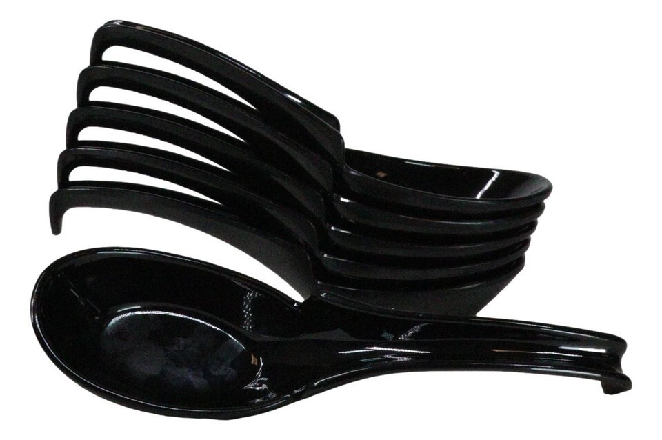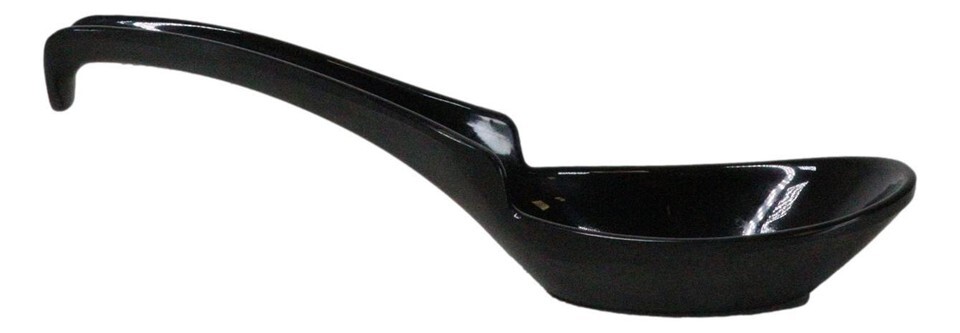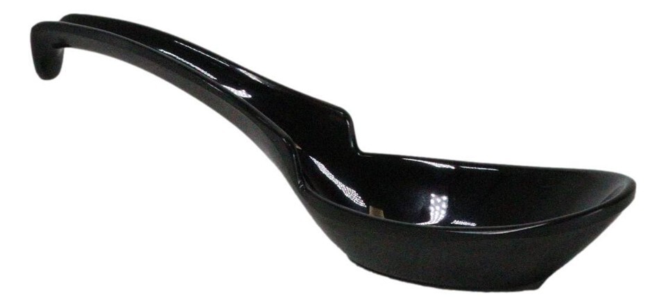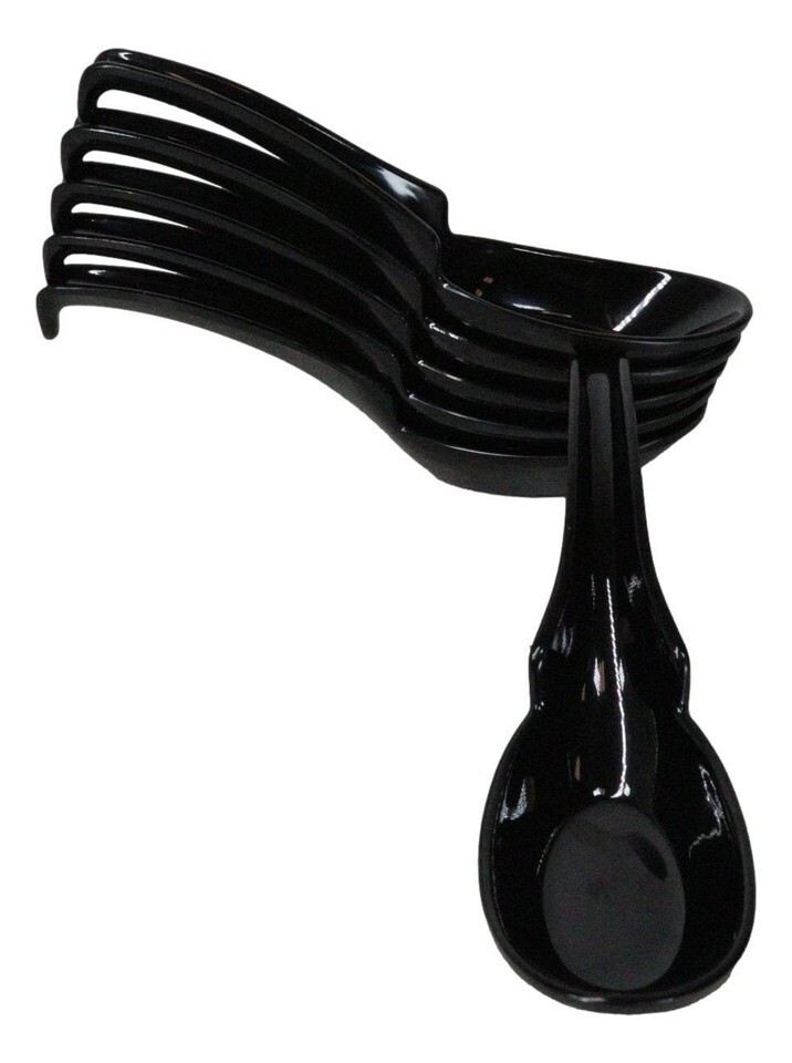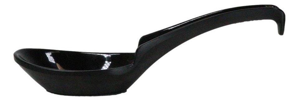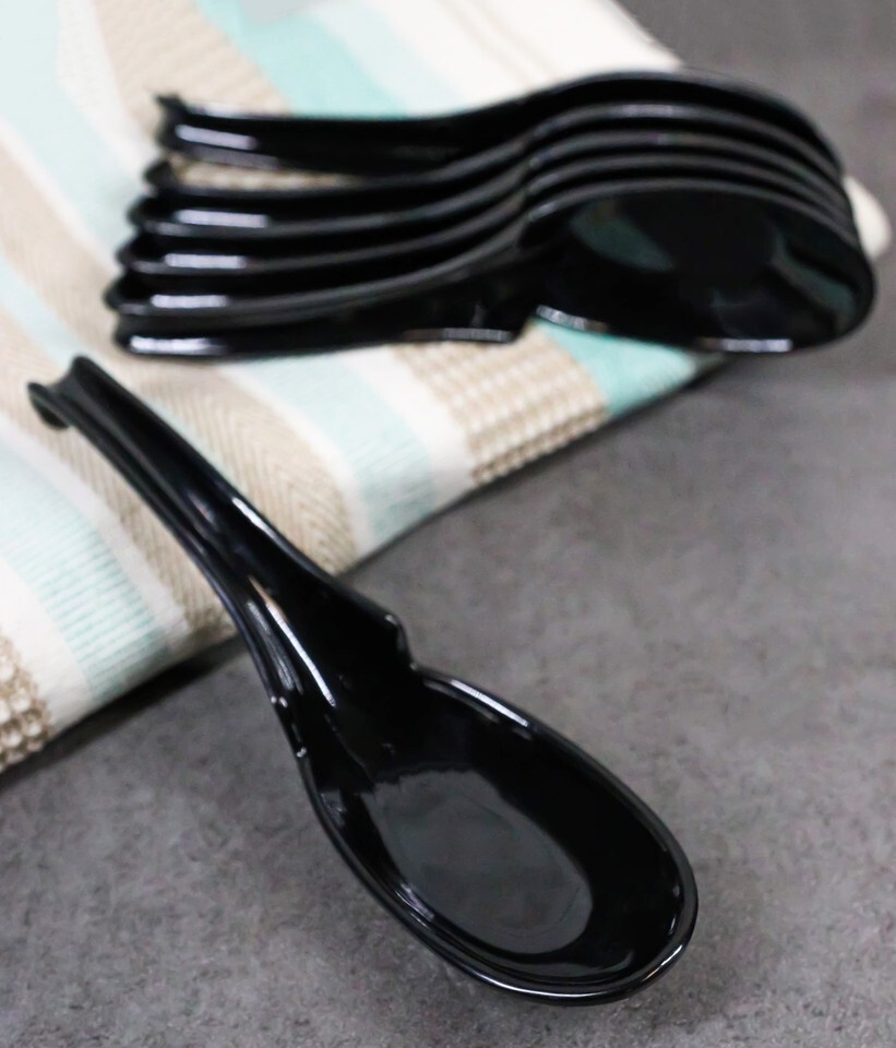 Contemporary Black Melamine Asian Soup Spoons With Ladle Hook & Notch Set Of 6