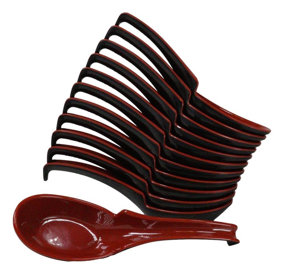 Contemporary Red Melamine Asian Soup Spoons With Ladle Hook & Notch Set Of 12