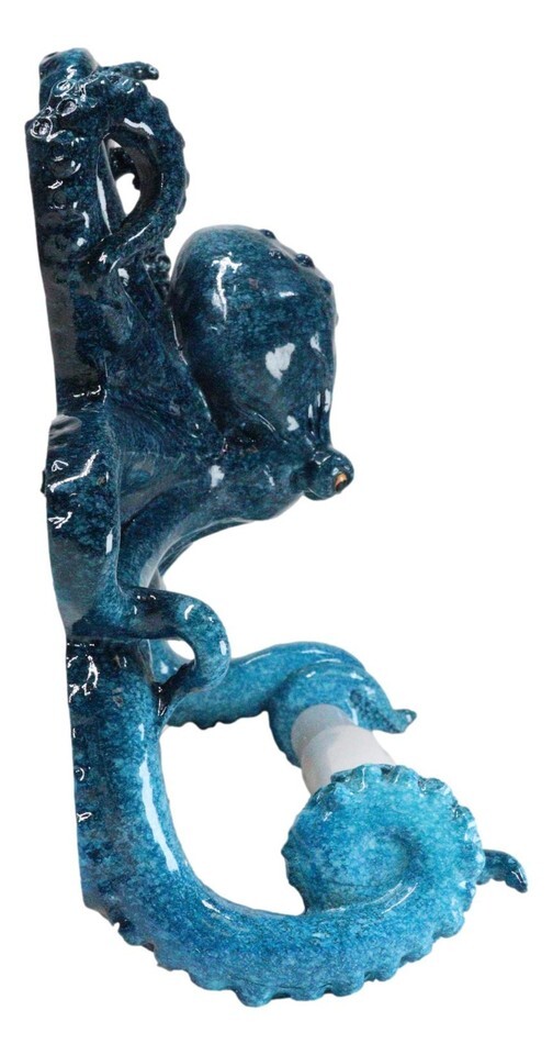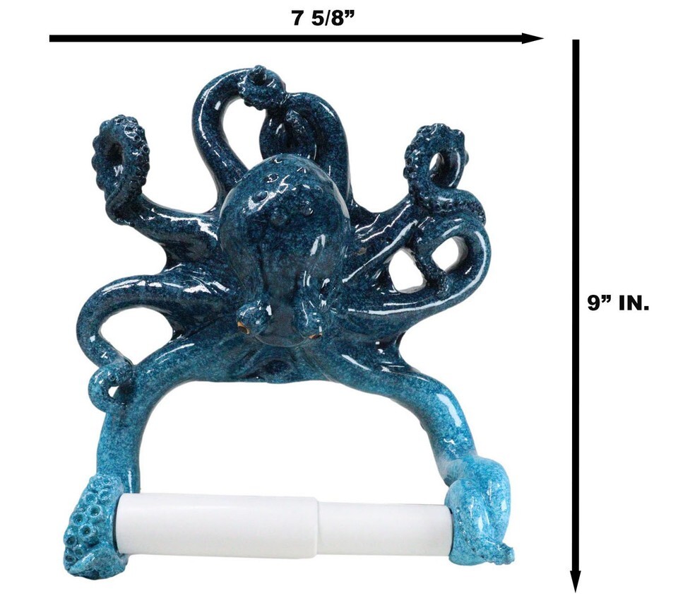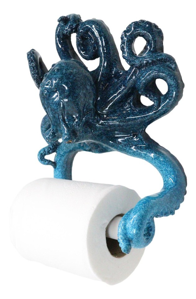 ? Bring a touch of the deep sea to your bathroom with this Blue Octopus Cephalopod Tentacles Toilet Paper Holder. This unique and striking design features an intricately crafted octopus with swirling tentacles that hold your toilet paper roll in an artistic and functional way. The vibrant blue finish captures the essence of the ocean, making it a perfect statement piece for coastal or nautical-themed bathrooms.