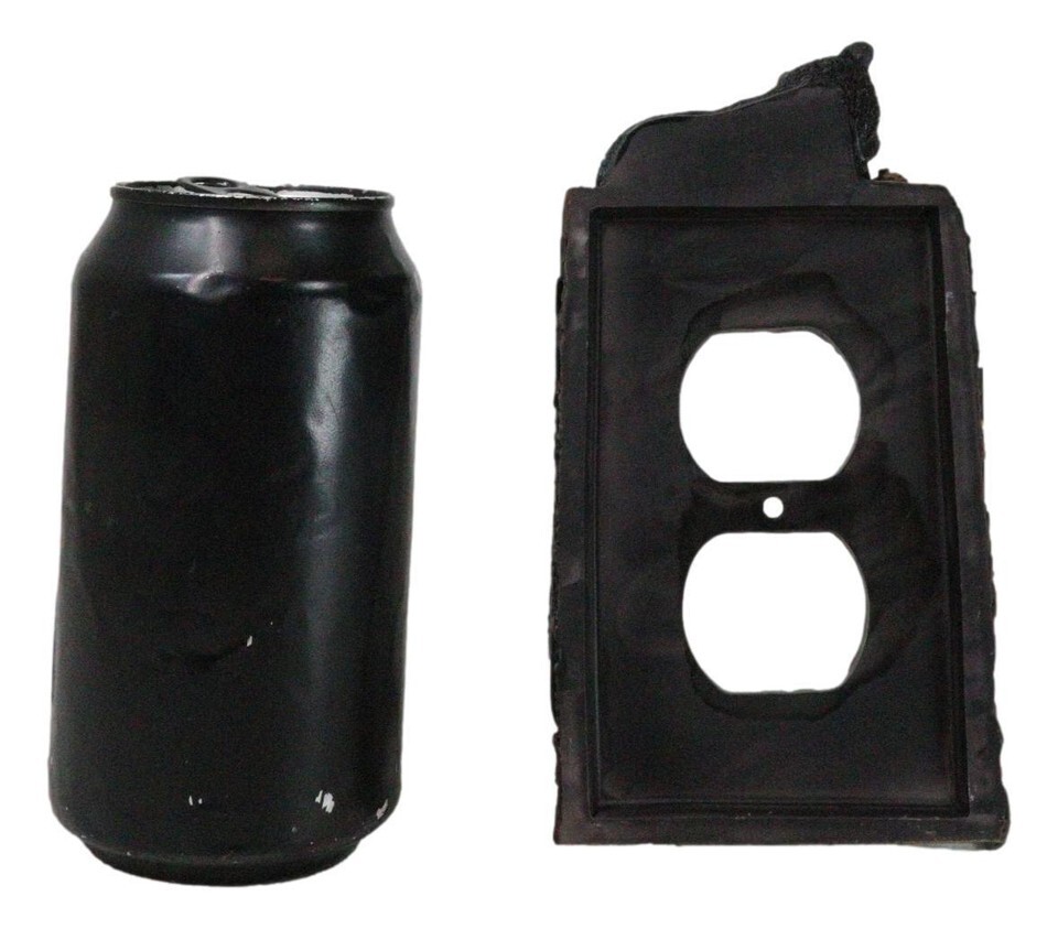 ? These Rustic Climbing Black Bears Wall Electrical Cover Plates each measures 6.25" High, 3.25" Wide and 1" thick approximately. They fit standard receptacles. Each plate weighs about 6 ounces.