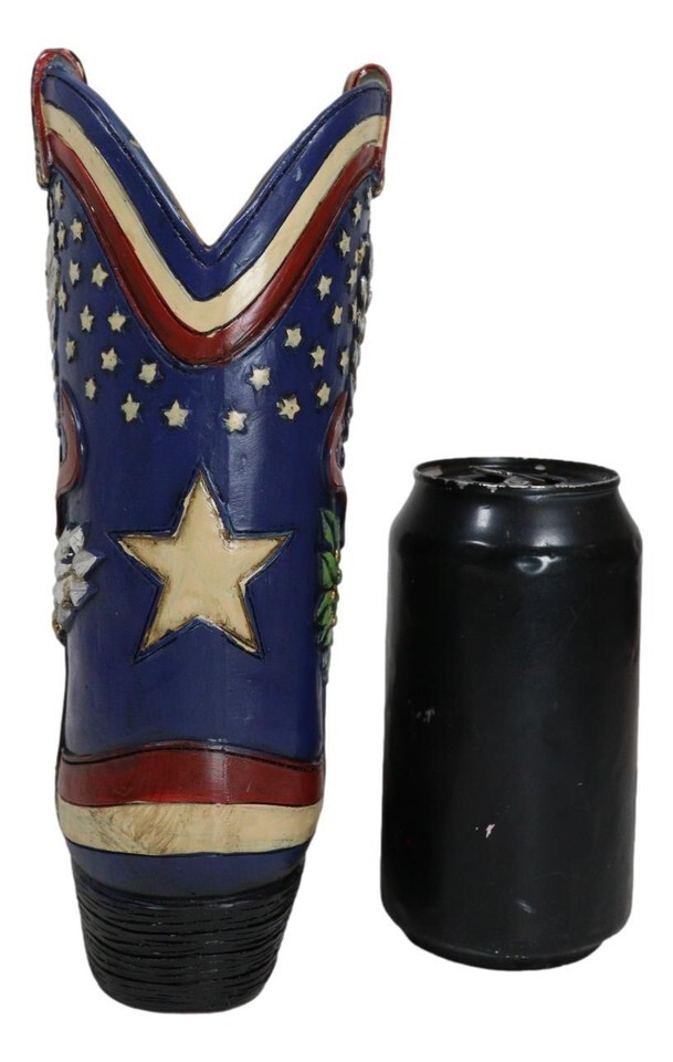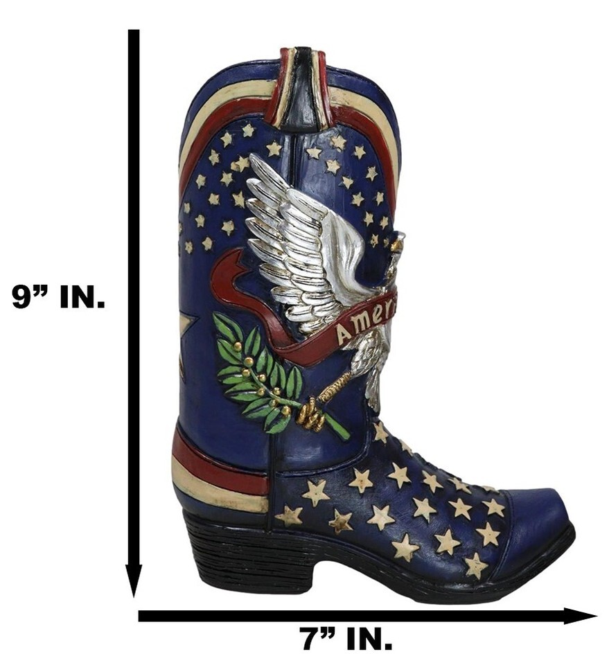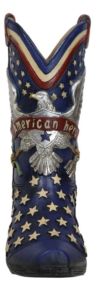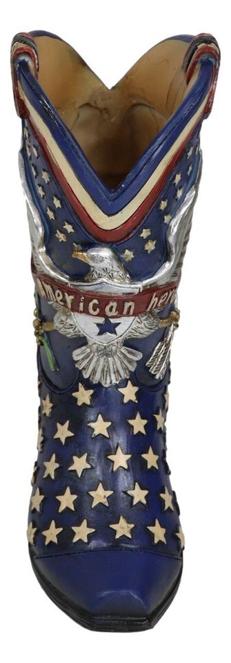 Patriotic Blue Western Stars American Hero Great Seal Eagle Cowboy Boot Vase