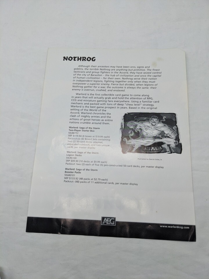 Warlord Saga Of The Storm Nothrog AEG Promotional Flyer Sheet 8 1/2" X 11"