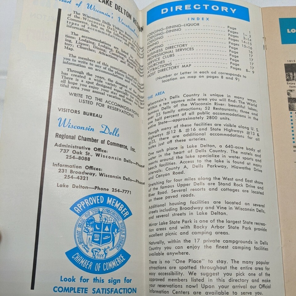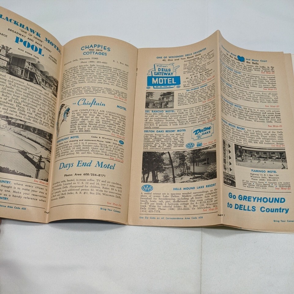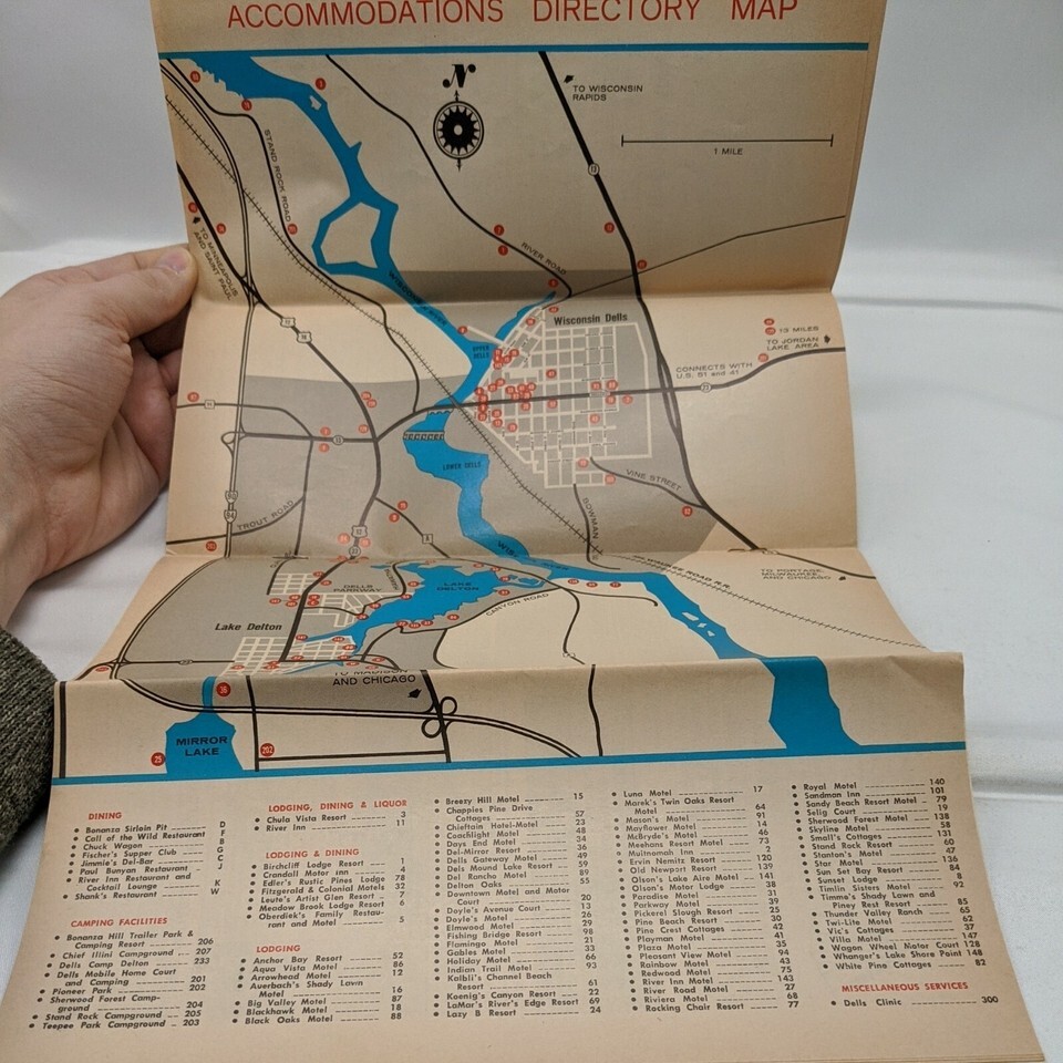 Vintage Wisconsin Dells Country Lake Delton Accommodations Directory Map. Combined Shipping (for USA Customers Only)