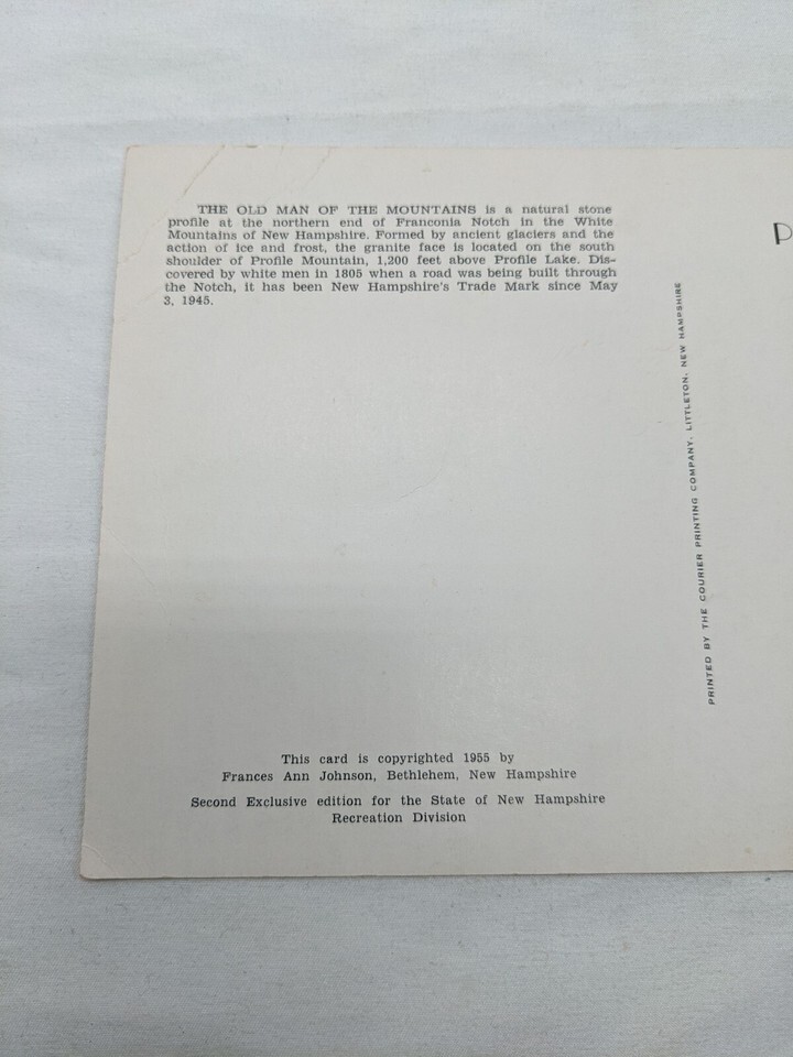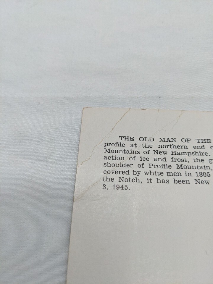 New Hampshire The Old Man Of The Mountains Post Card. Combined Shipping (for USA Customers Only)
