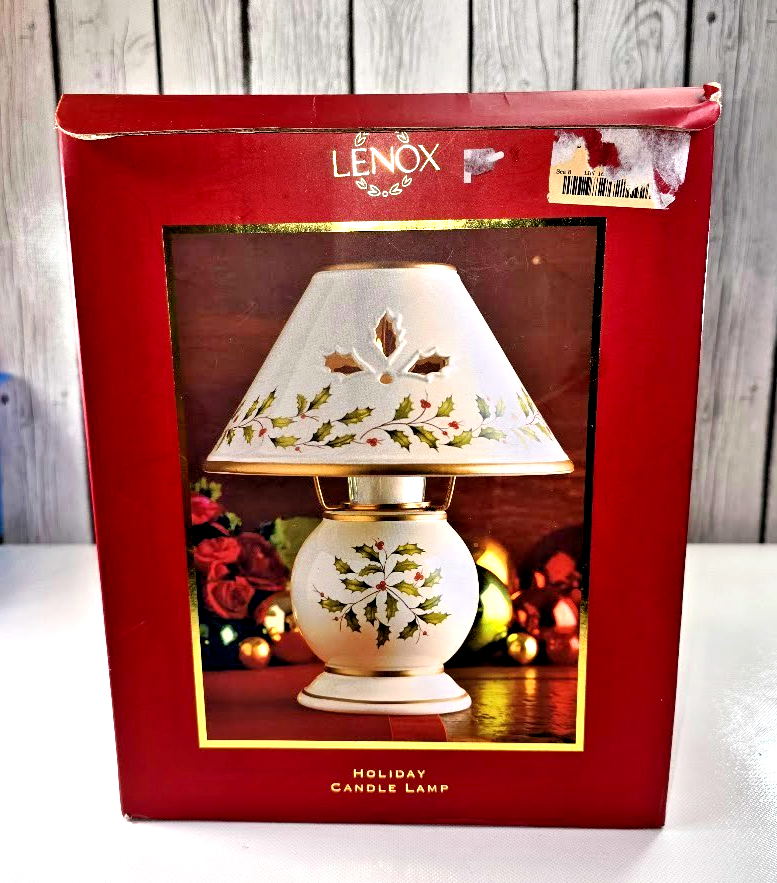 Lenox Holiday Candle Lamp Votive Holder With Shade Porcelain 7” In Original Box