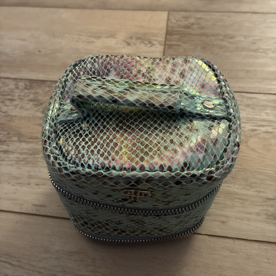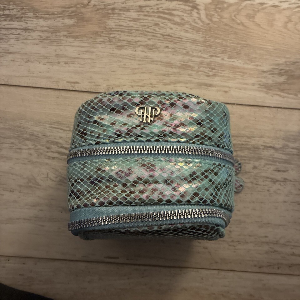 Nicole Miller Iridescent Aqua Blue Snake Skin Cosmetic Pouch