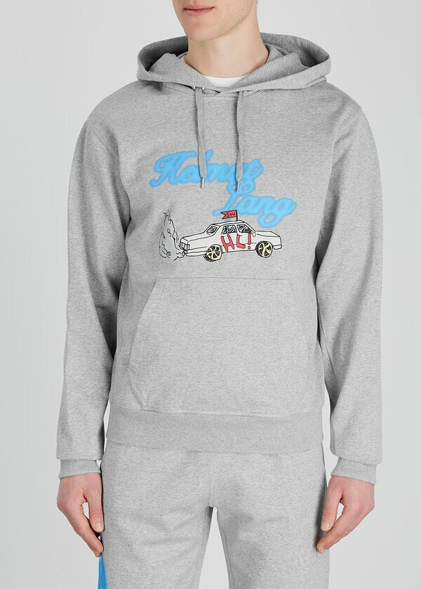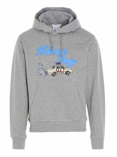 This is a great Helmut Lang hoodie. The Saintwoods collaboration Taxi Print hoodie in Heather Gray.