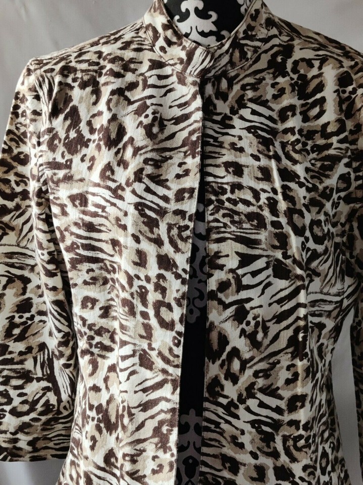 Additions By Chico's Size 1 Womens Leopard Print Brown Jacket Long Sleeve