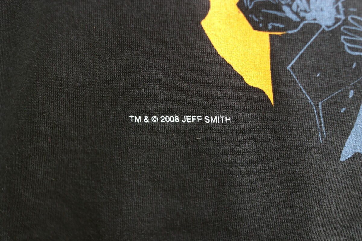 The NOS Vintage Y2K 2008 Jeff Smith RASL Black Graphitti T Shirt in multiple sizes is a unisex adults T-shirt with short sleeves. This multicolored shirt features a design by Graphitti Designs, making it a unique and nostalgic piece of clothing for fans of the Rashid Khalifa Smith comic series. Perfect for those looking to add a touch of retro charm to their wardrobe, this shirt is a great find for collectors of vintage graphic tees.