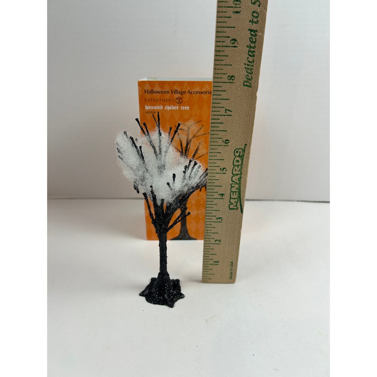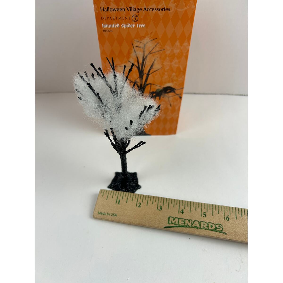 Give your Halloween village a spooky accent with this Department 56 Haunted Spider Tree (SKU 4057634). The piece features a stylized black tree structure with webbing (white ?fiber fill?) and spider detail.