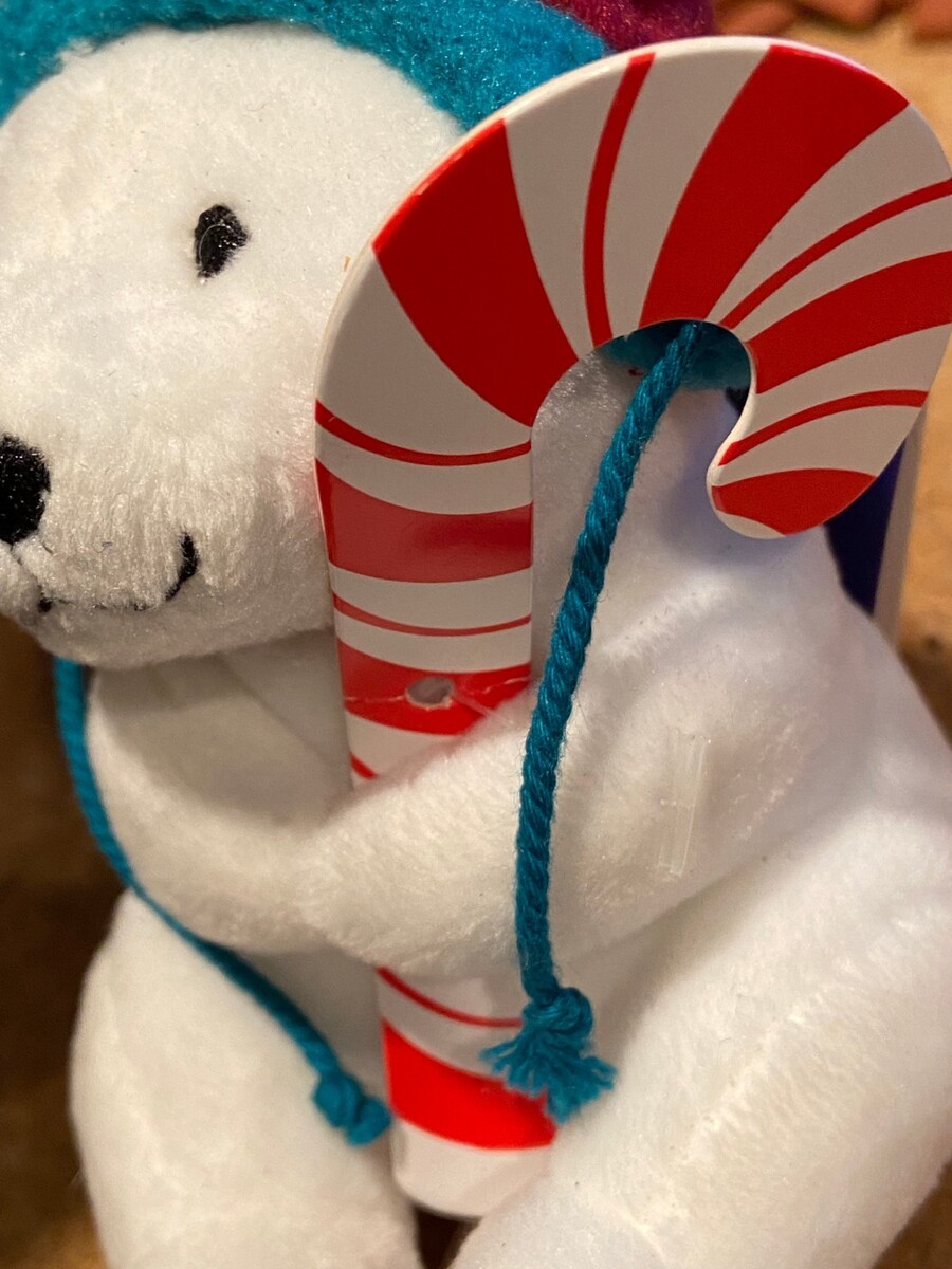 Hallmark Northpole Christmas Ornament Polar Bear Plush w/Candy Cane *NEW* m2