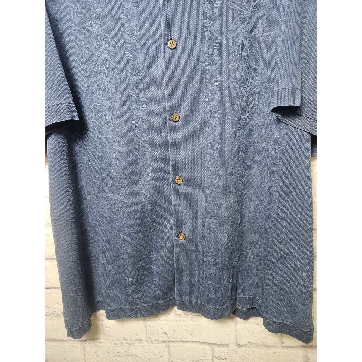 Tommy Bahama Mens 100% Silk Short Sleeve Shirt Blue Size XL Floral Pattern