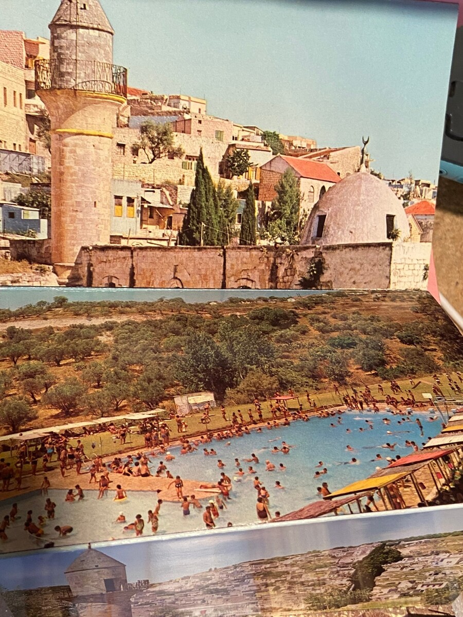 The postcard set is new in the fold out. They are all attached and show Safad Israel
