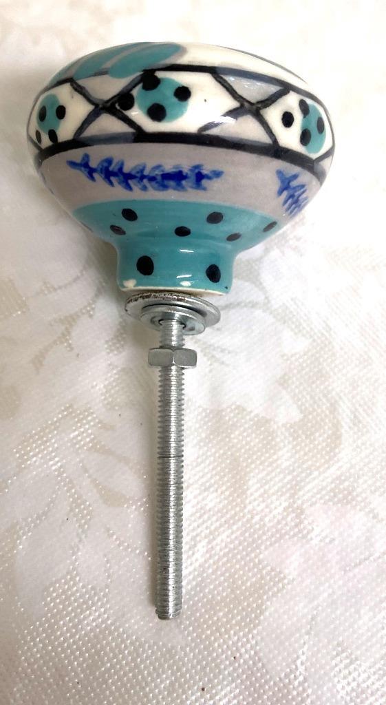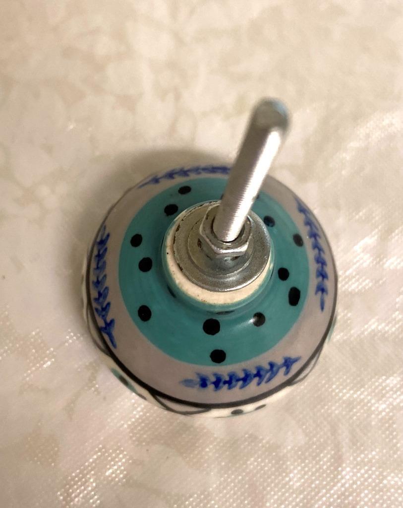 Vintage Drawer Pull Cabinet Knob Teapot Design Aqua Black & White 1.34" x 1.5" L