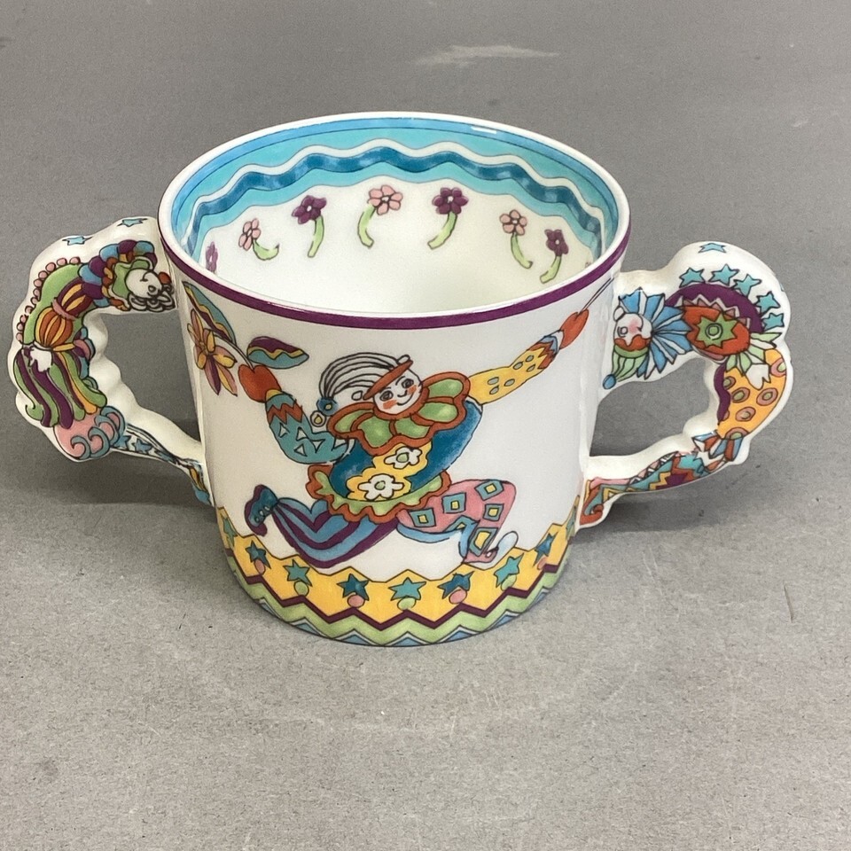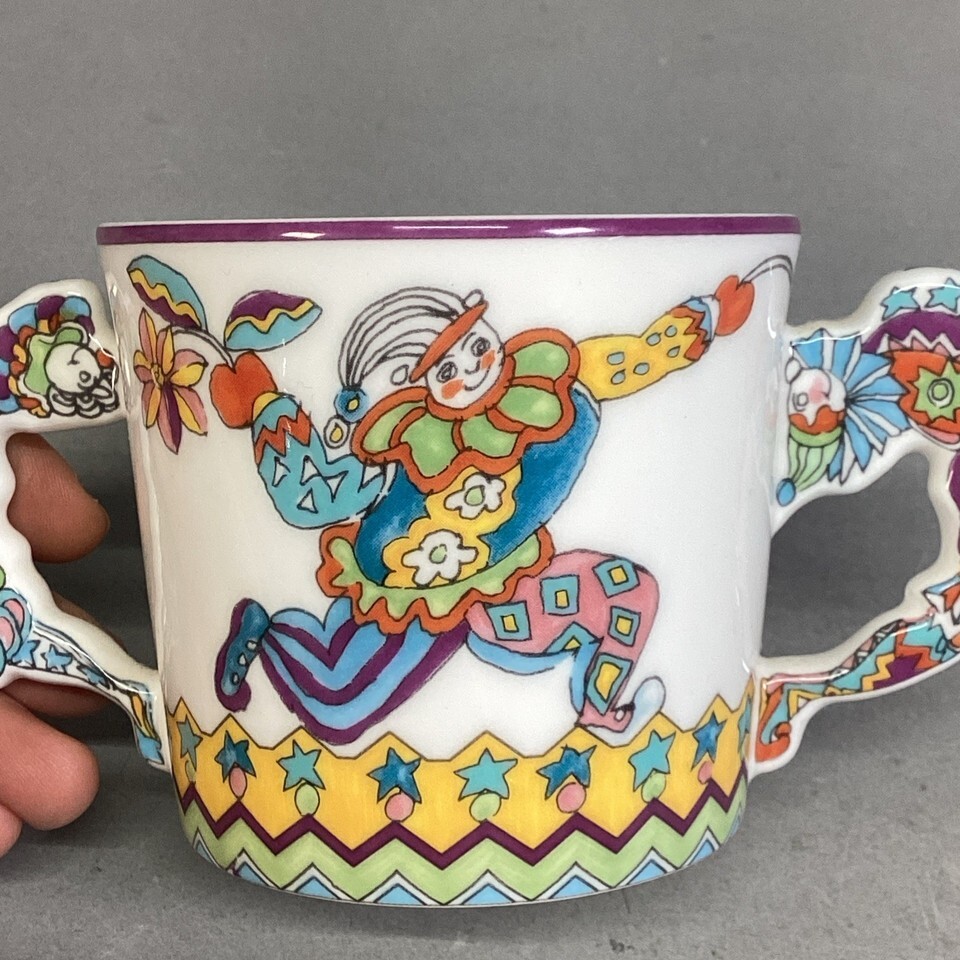 Vintage Tiffany Gene Moore Fantasy Double Handled Jester Porcelain Circus Mug