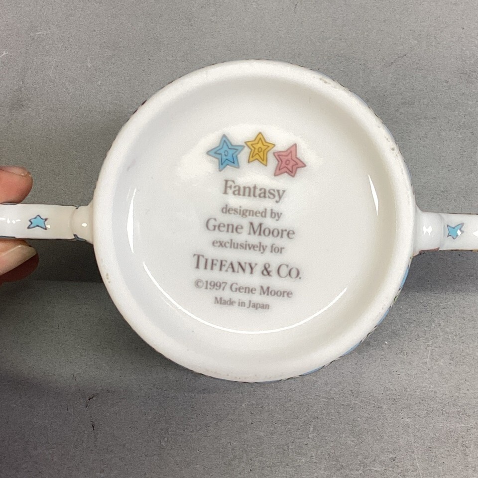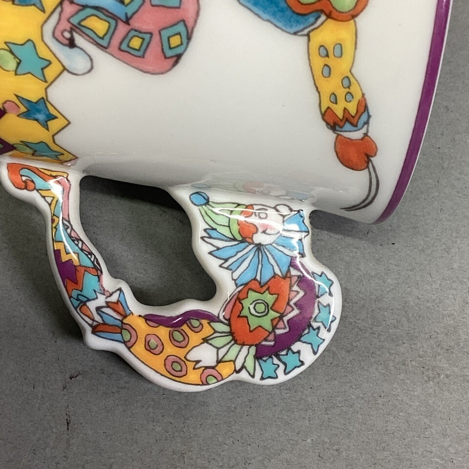 Vintage Tiffany Gene Moore Fantasy Double Handled Jester Porcelain Circus Mug. In very good condition. This mug is from 1997 and measures 3?Hx3.25?D