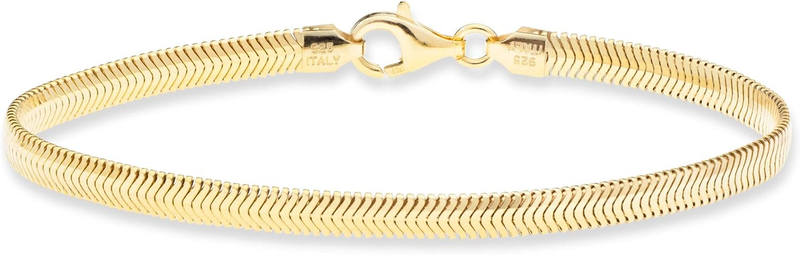 Men's Italian 18K Gold Over 925 Sterling Silver 4mm Herringbone Bracelet 7.5"