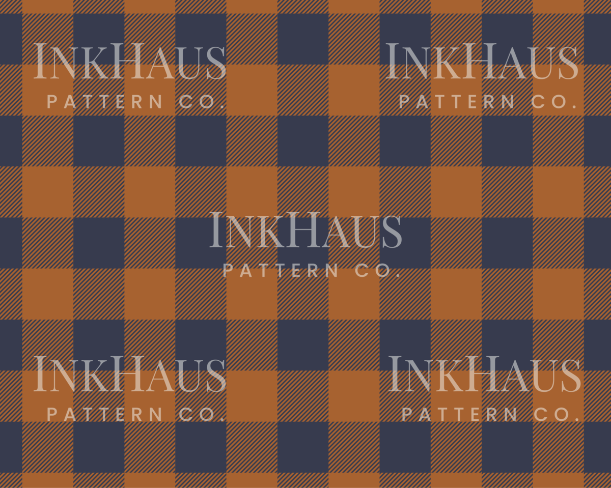 Orange and Blue Gingham Seamless Pattern - Blue Custom Plaid Digital Download