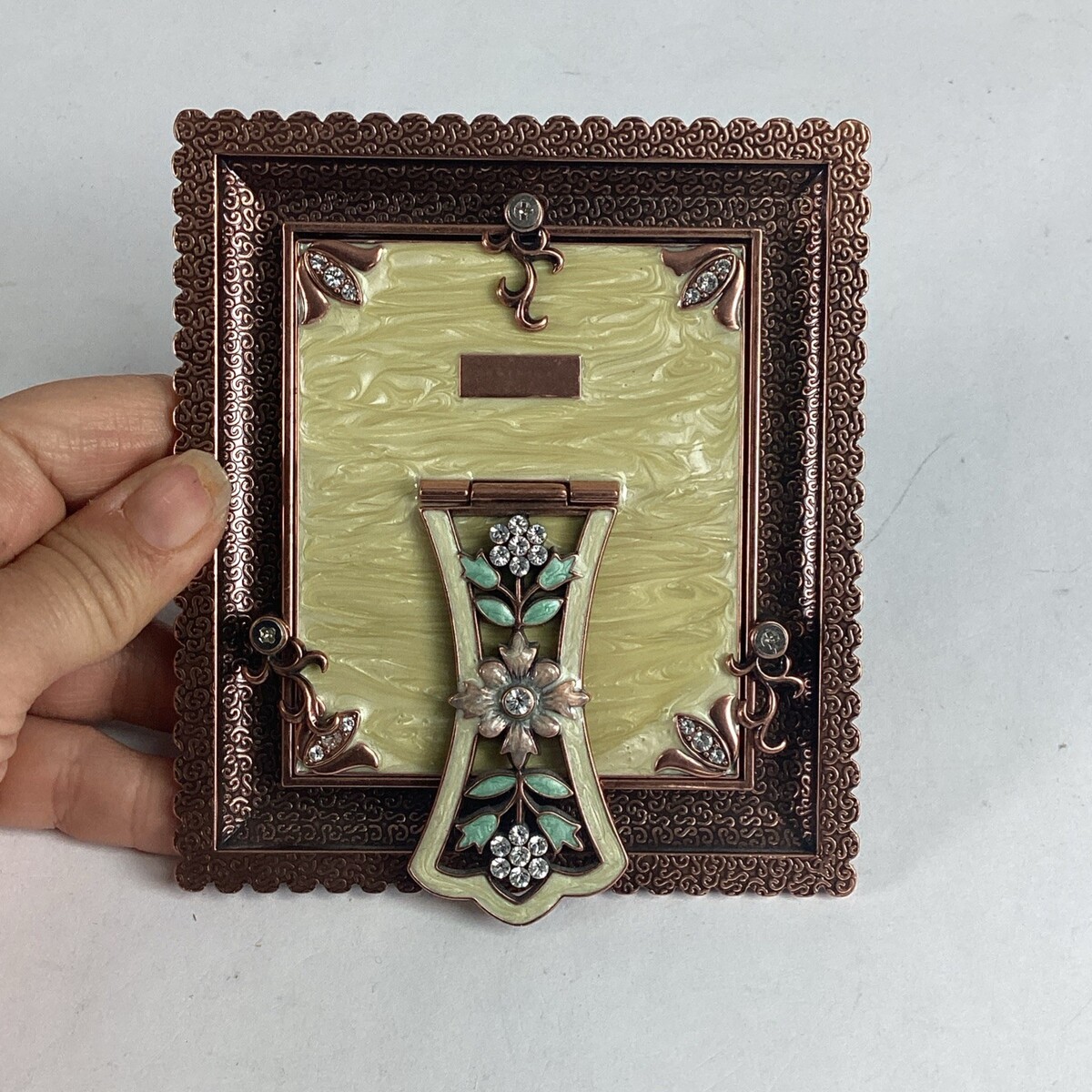 Argento SC Photo Picture Frame. The frame measures 5x4.25? and it?ll hold a 2.75x3.25? picture. The 3 back clips are loose and will need to be tightened.