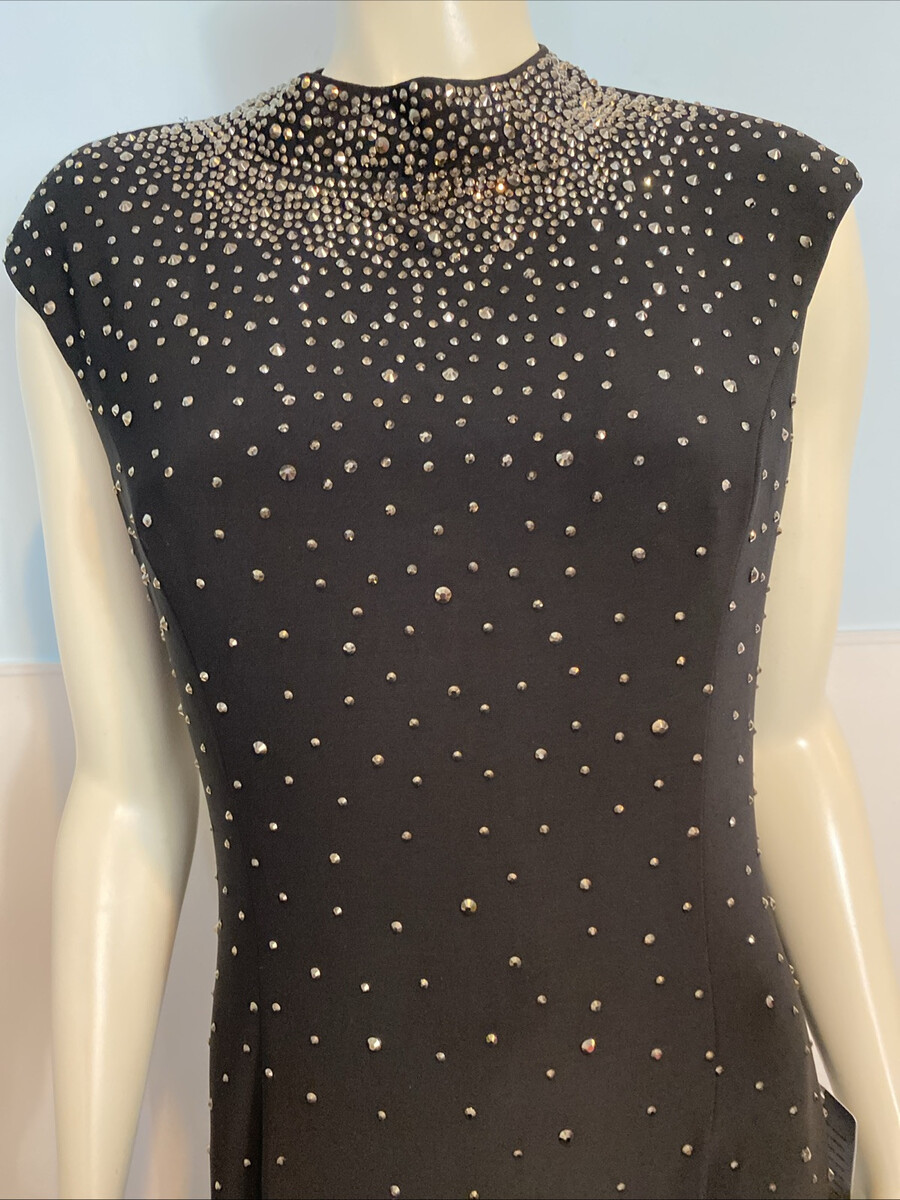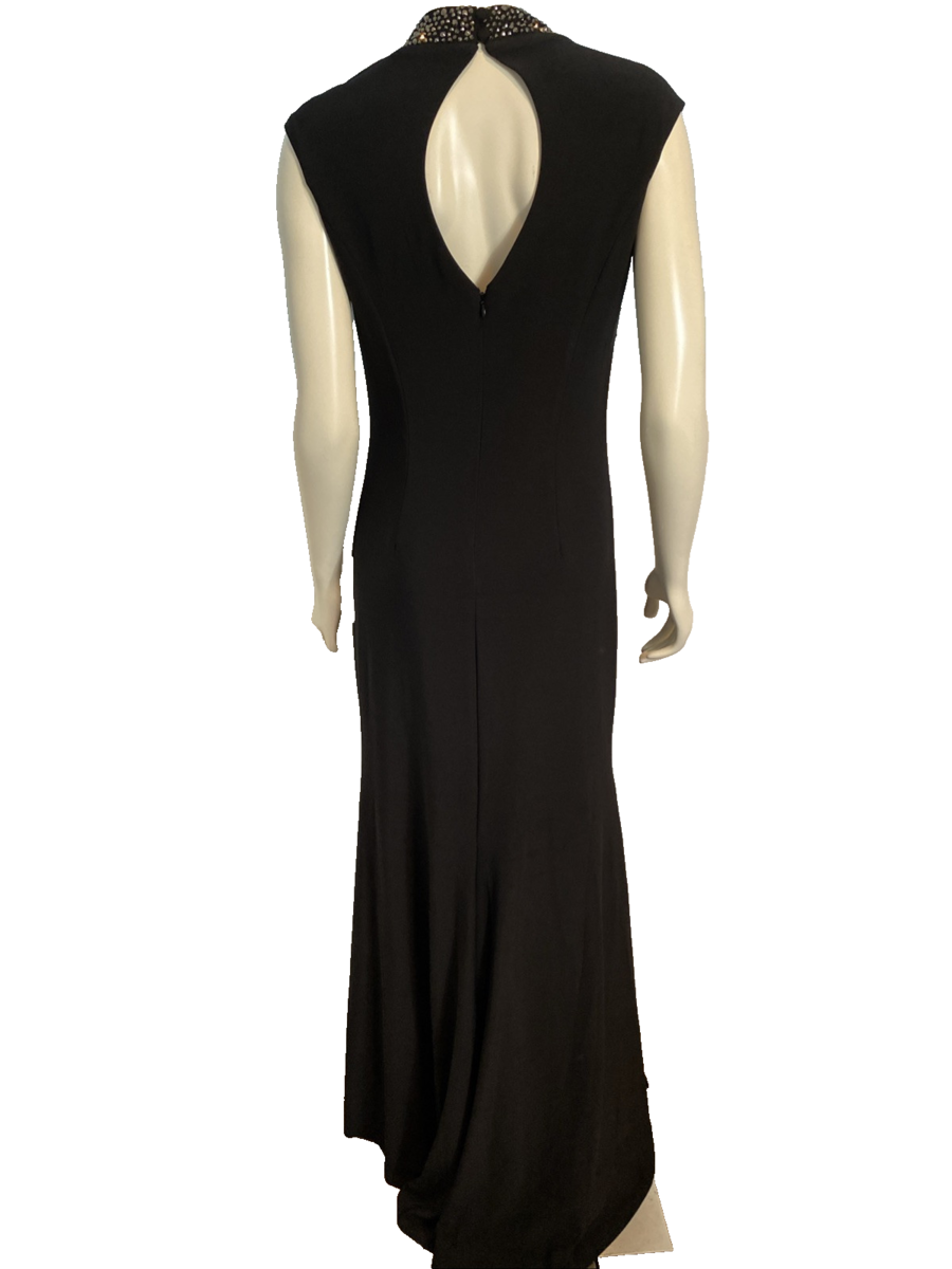 NWT Eliza J Black Sleeveless High Collar Studded Lined Knit Long Dress Size 10