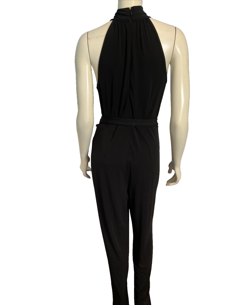 The Limited Black Knit V Neck Back Zip Sleeveless Jumpsuit Size L