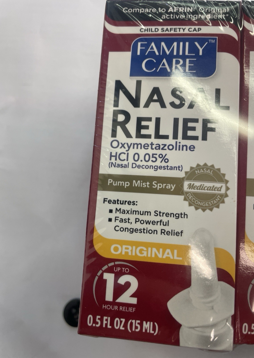 Family Decongestant Pump Mist Spray - 0.5 fl oz Up To 12 Hours Relief. You may get a 2-pack, 6-pack, or 12-pack based on your choice.