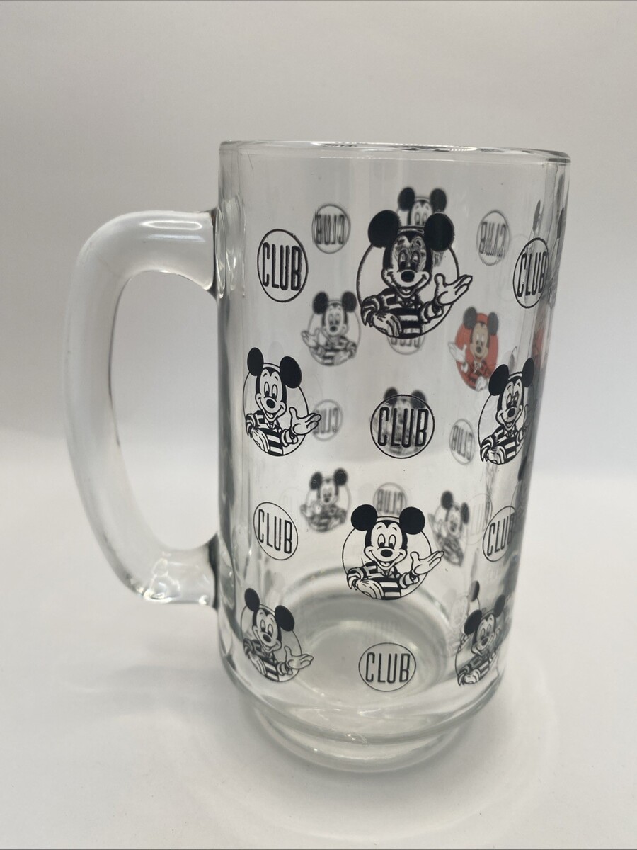 Vintage Mickey Mouse Club Tall Glass Mug Clear 16 Oz