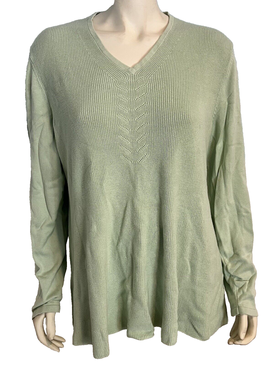 ISAAC MIZRAHI LIVE! Women's Cotton Blend V-Neck Sweater Mint Green XL