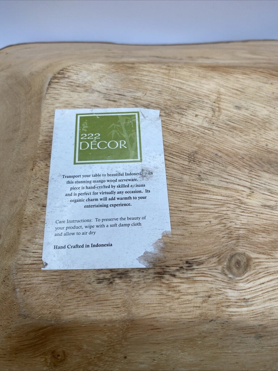 222 Decor Live Edge Wooden Square Bowl 13' NEW