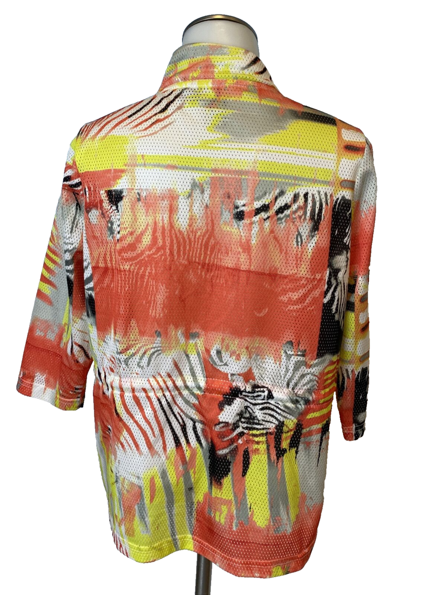 Sportelle Petite White, Yellow, Orange, Gray Print 3/4 Sleeve Jacket Size PL