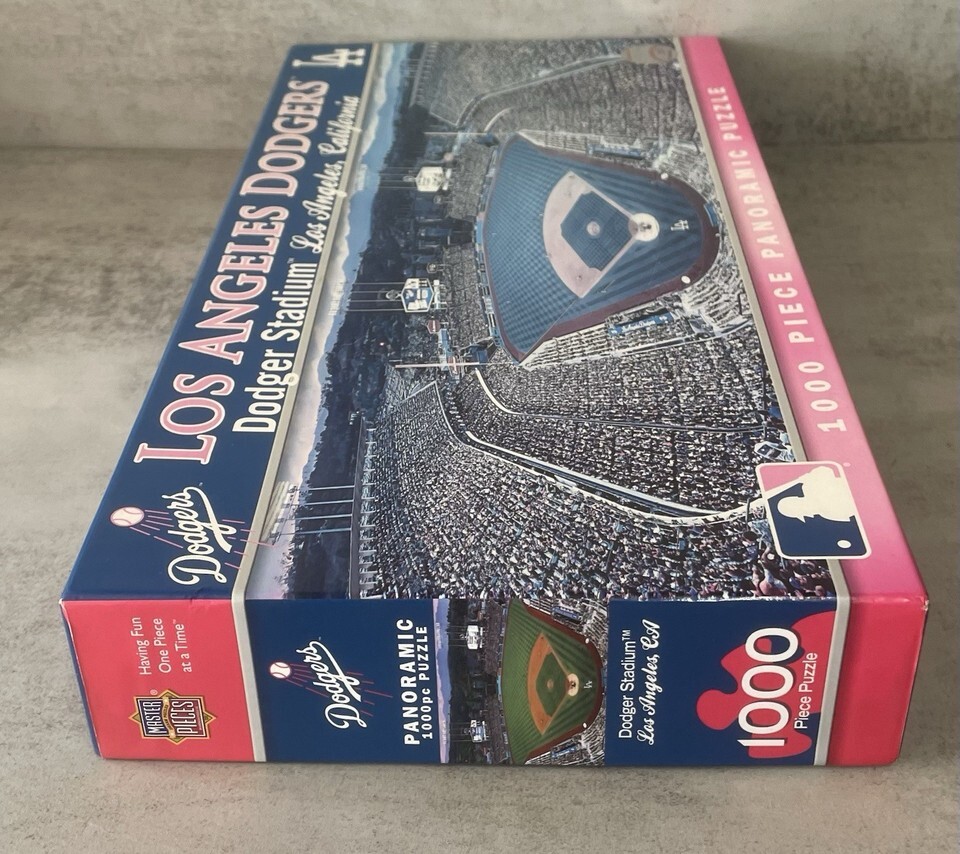 The Los Angeles Dodgers Stadium 1000-Piece Panoramic Jigsaw Puzzle, licensed by Major League Baseball, features the iconic Dodgers. Made by Masterpieces Inc., it depicts a colorful, detailed stadium image measuring 39 x 13 inches when complete. Perfect for Dodgers fans and baseball enthusiasts, it offers a relaxing way to celebrate the sport.