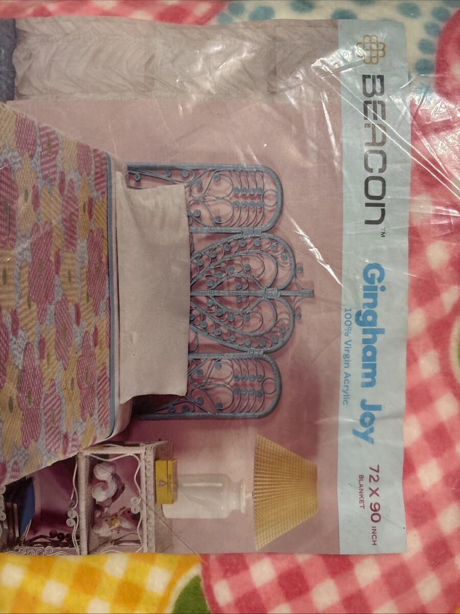 Vintage Beacon Blanket 72 X 90 GINGHAM JOY Made in USA Unused