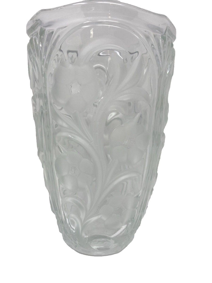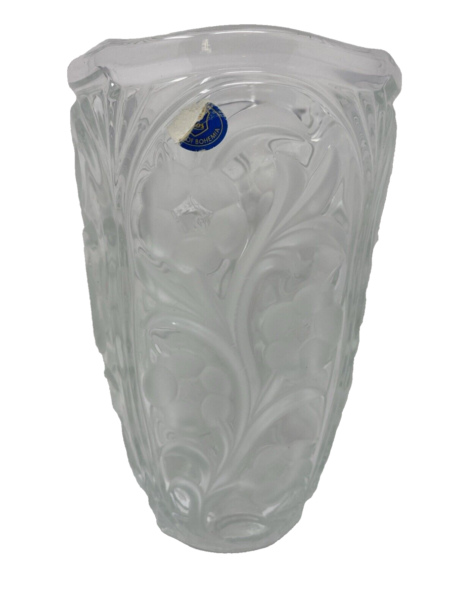 Libs Bohemian Glass Vase Floral Design Clear 8"