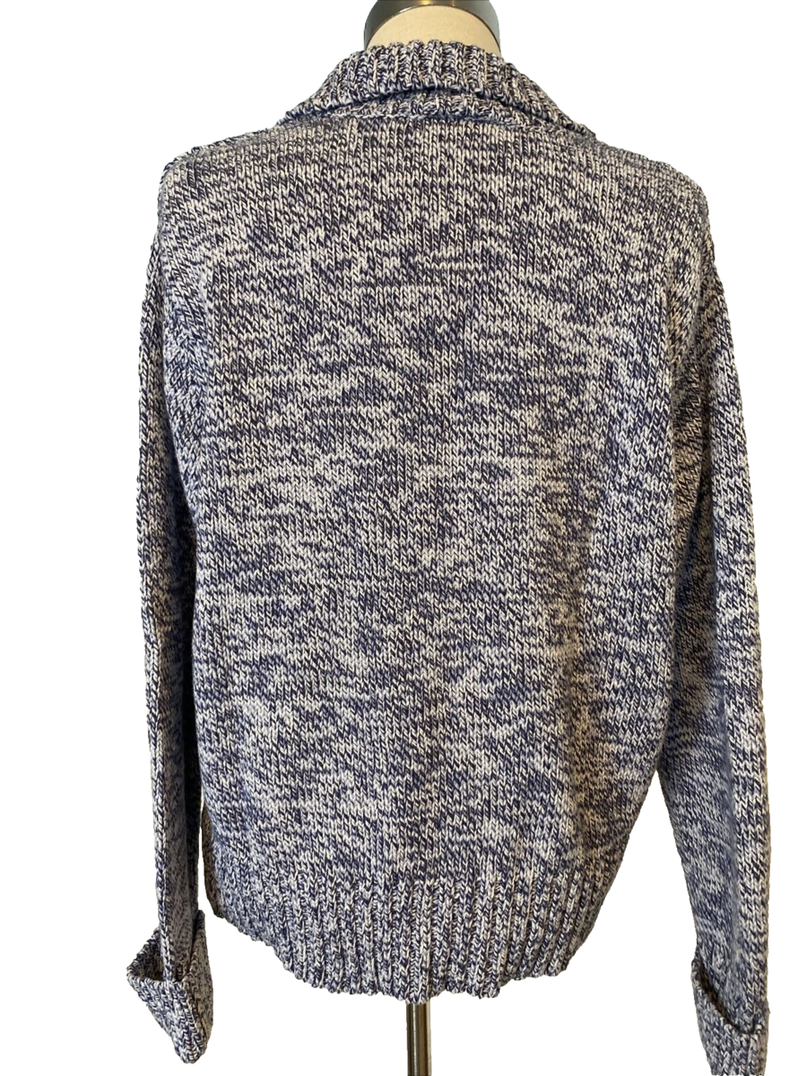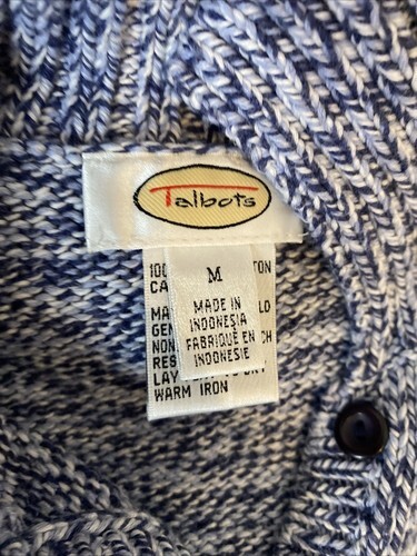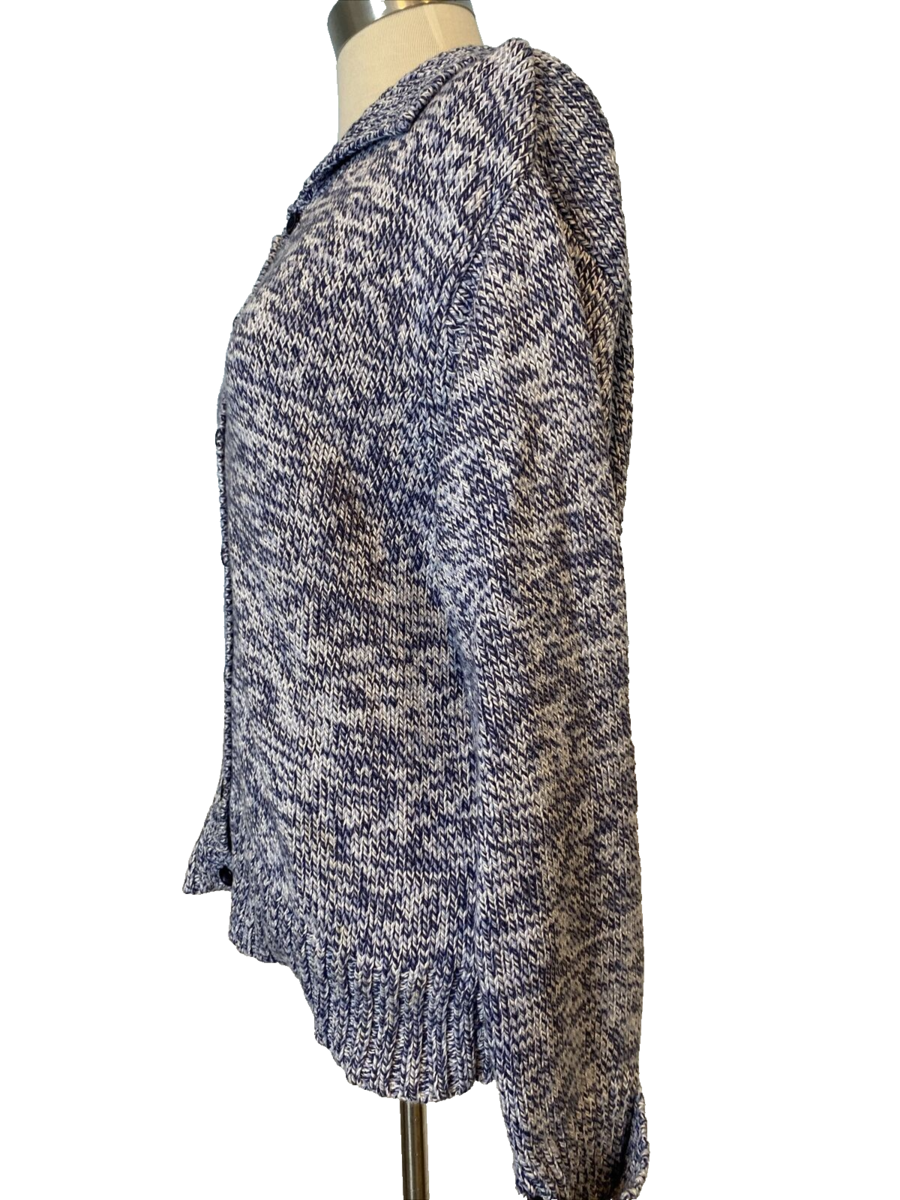 Talbots Blue and White Knit Cotton Collared Button Front Cardigan Size M
