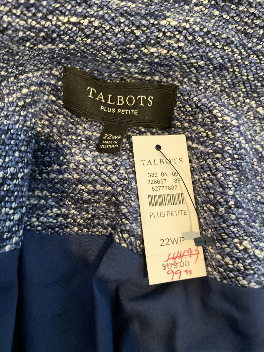 NWT Talbots Plus Petite Blue Marled One Button Lined Collared Blazer Size 22WP