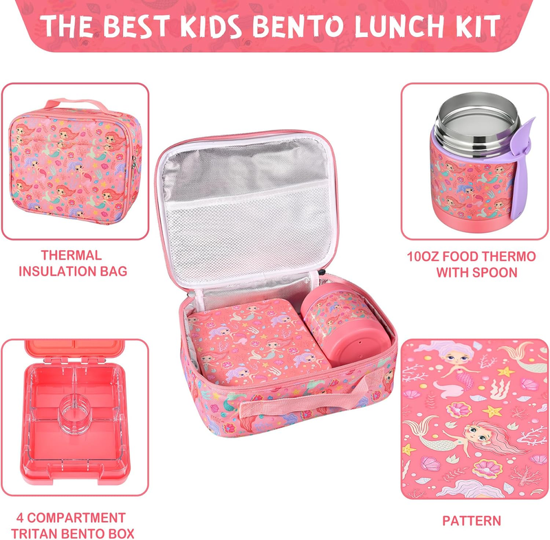 Bento Lunch Box Set with 10Oz Soup Thermo, Leak-Proof Lunch Containers with 4 Co