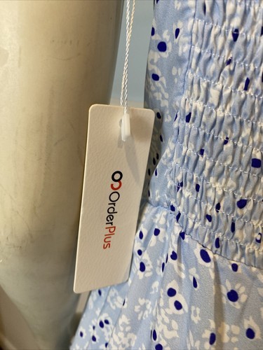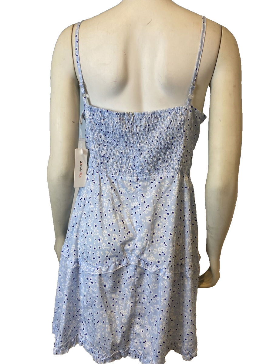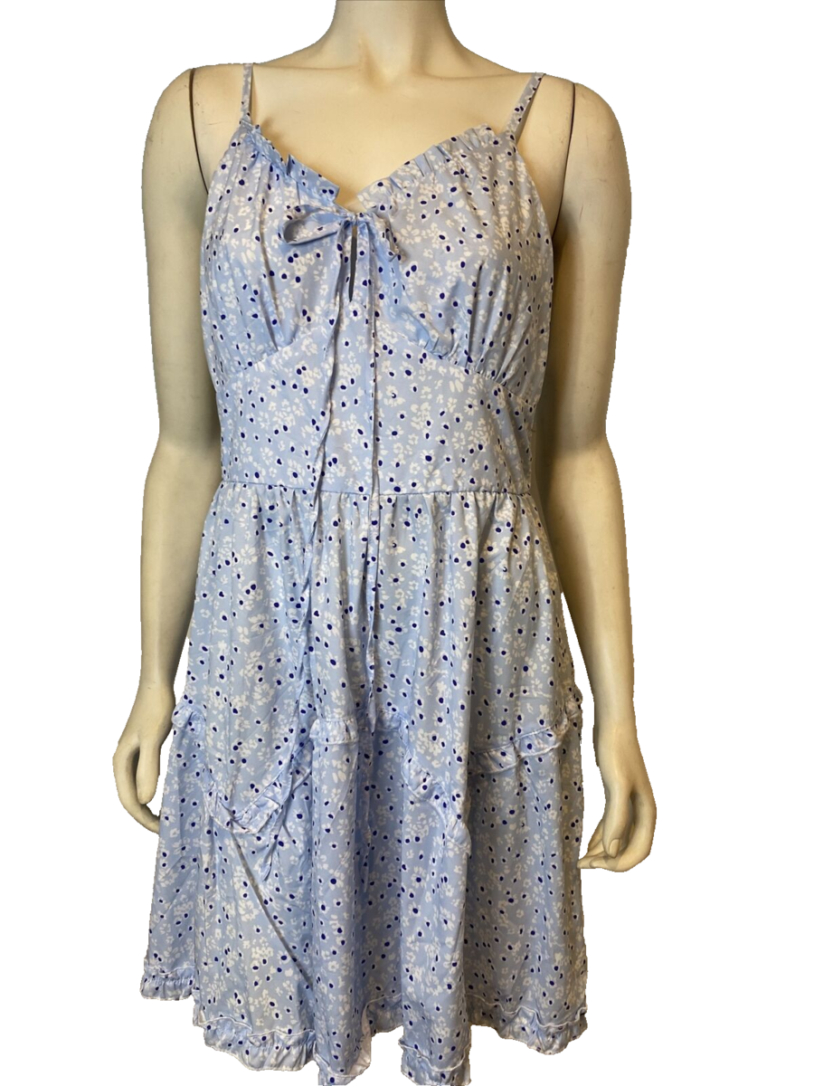 OrderPlus Blue and White Floral Print Spaghetti Strap Tiered Sundress Size M NWT