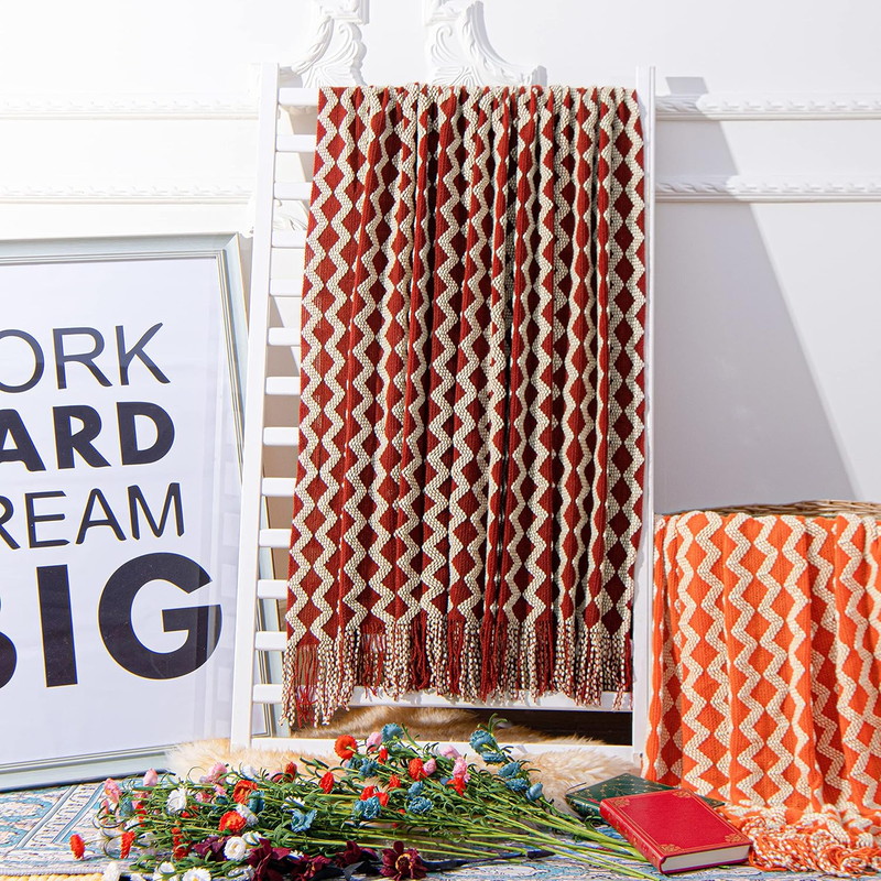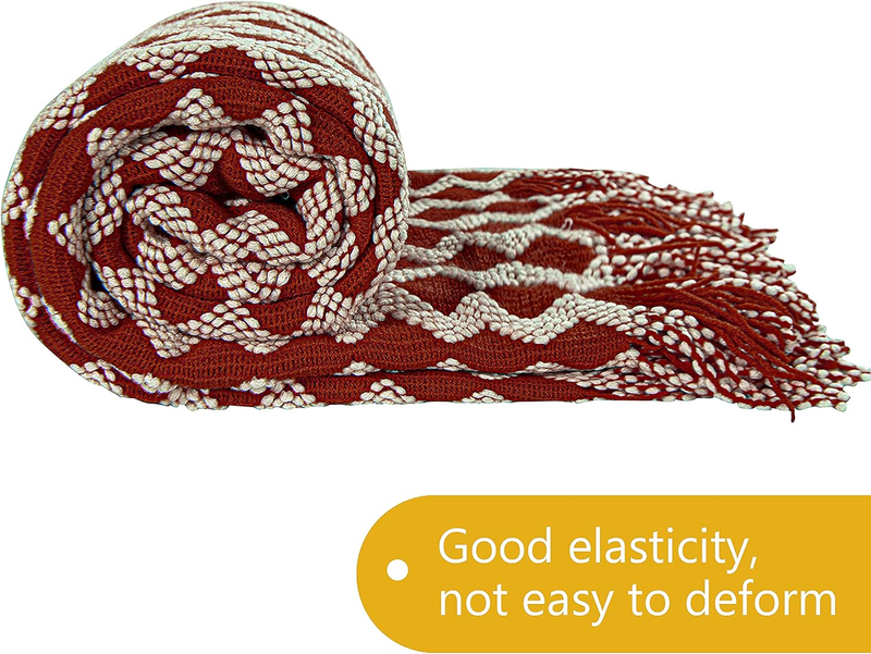 PRODUCT FEATURES: Our comfortable blankets are made of acrylic fabric, which has greater flexibility and strength than wool. This light acrylic blanket is ultra-soft, fluffy and strong resistance to sunlight. This knitted blanket with special tassel design on both sides adds to the beauty of the product.
