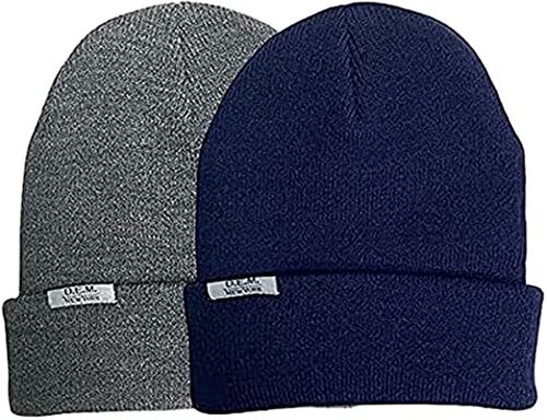 D.E.M. New York Unisex Beanie Hats - 2 Pack- Hat - Skull Caps Knit Beanie for Winter Navy/Charcoal