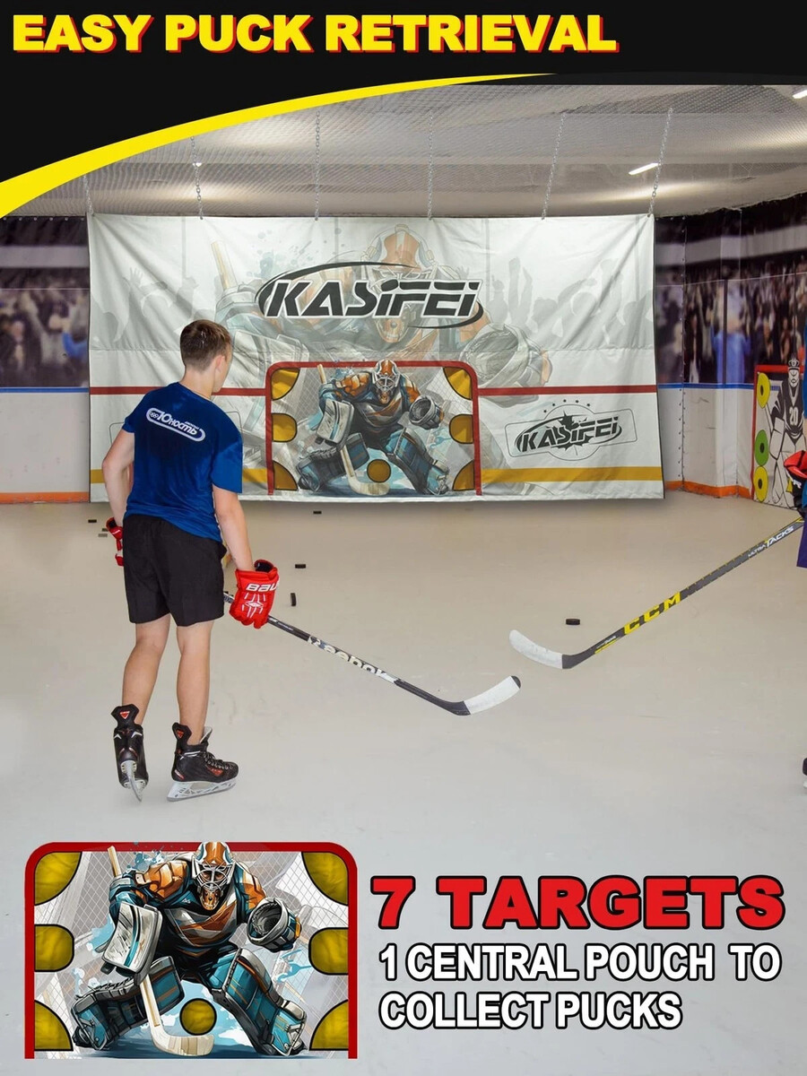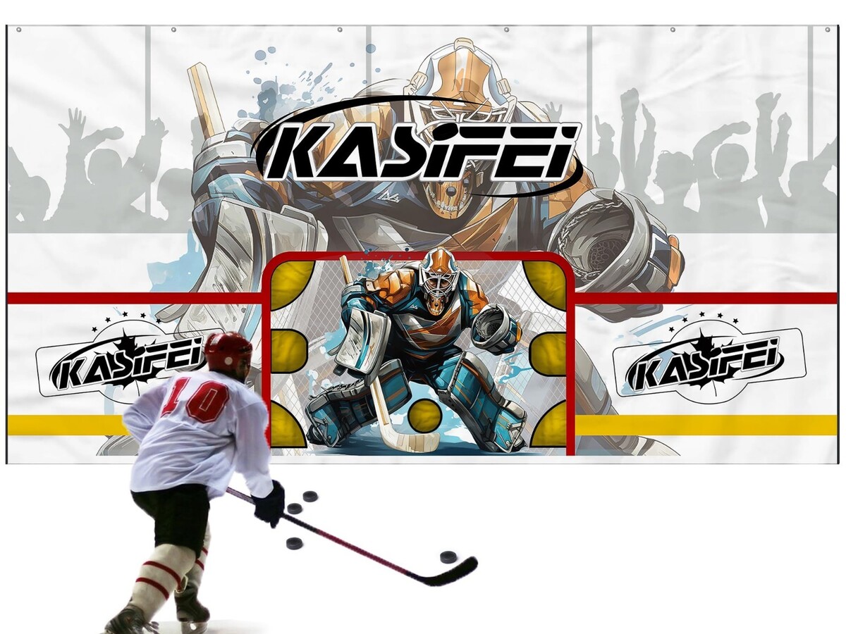 hockey tarp, shooting target, goalie trainer, hockey net shooter, practice tarp, hockey skills, Kasifei hockey, training goal tarp, garage hockey, goalie net target