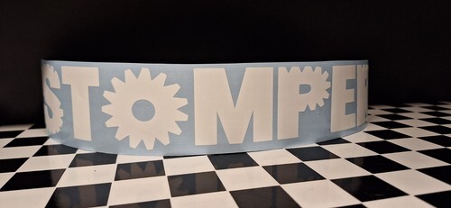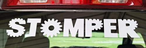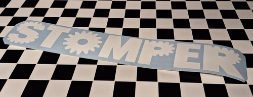 Approximately 12" long White "Stomper" Vinyl Sticker. 3 year vinyl.