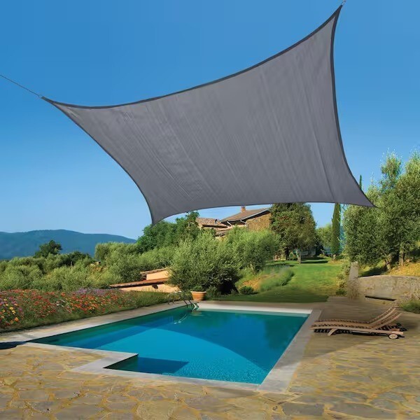 Add style, shade and privacy to your outdoor area with this 12 ft. x 12 ft. square shade sail. Made with UV-stabilized material, it blocks and protects from up to 90% of the sun's UV rays. The breathable accessory prevents heat from being trapped underneath to add comfort. It stands up to mold, mildew, stains, tears, cracks and fading so you can enjoy it season after season. This shade sail does not include installation hardware.
