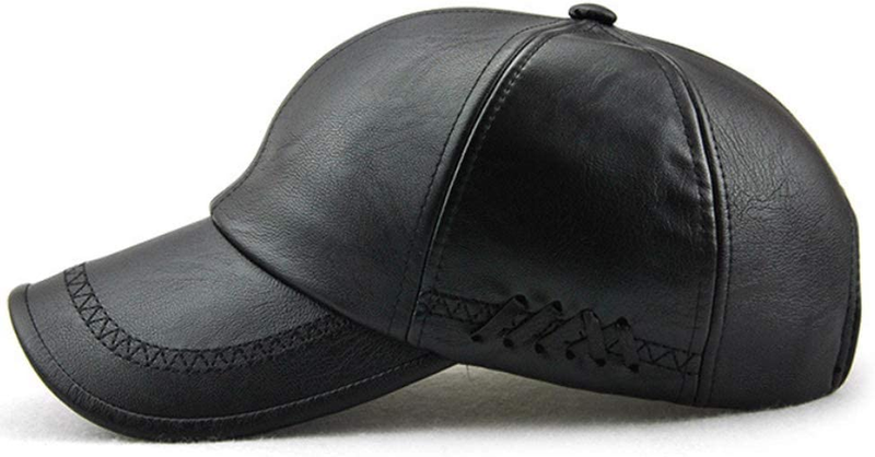Unisex Adjustable Leather Baseball Cap for Men, Winter Hat (Black)