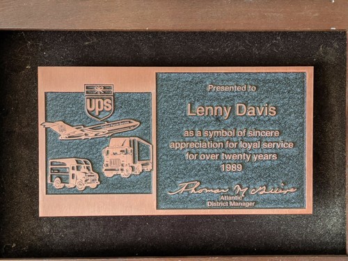A vendre est une plaque en bois metallique personnalisee UPS 20 Years of Service Appreciation Award de 1989.