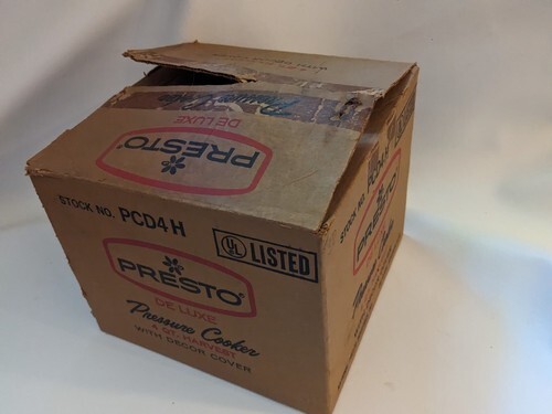 A vendre est un nouveau dans une boîte ouverte Autocuiseur Presto 4 Qt Or Jaune Decor Couvercle Design Manuel PCF4H A413A.